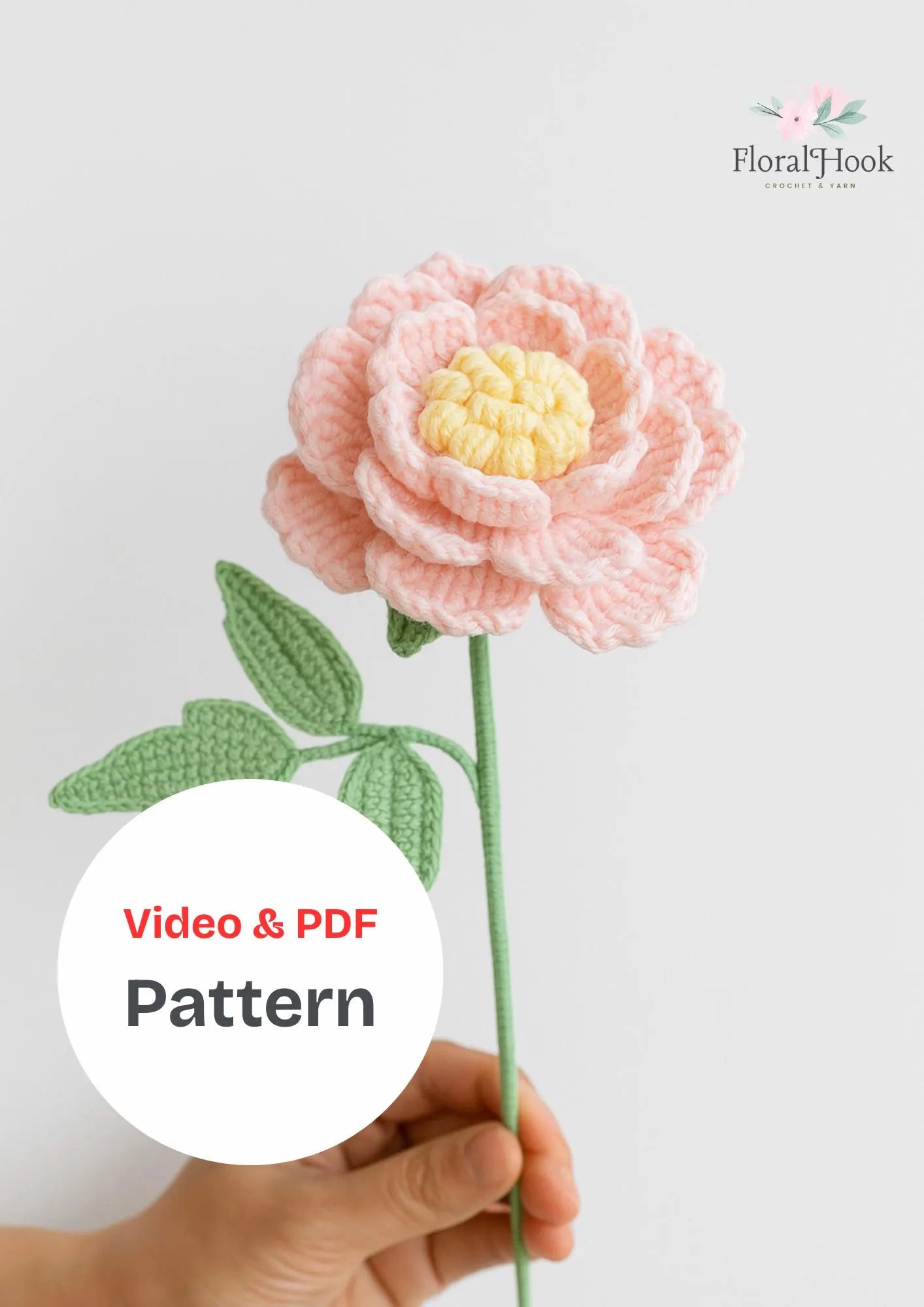 This PDF pattern of crochet Peony Flower is simple, beginner-friendly design; you do not need advanced skill levels to make them. You must know the basic crochet stitches and the ability to add wire to a crochet project. The PDF patterns come with a detailed video tutorial to guide you through the crocheting process. Happy crocheting!